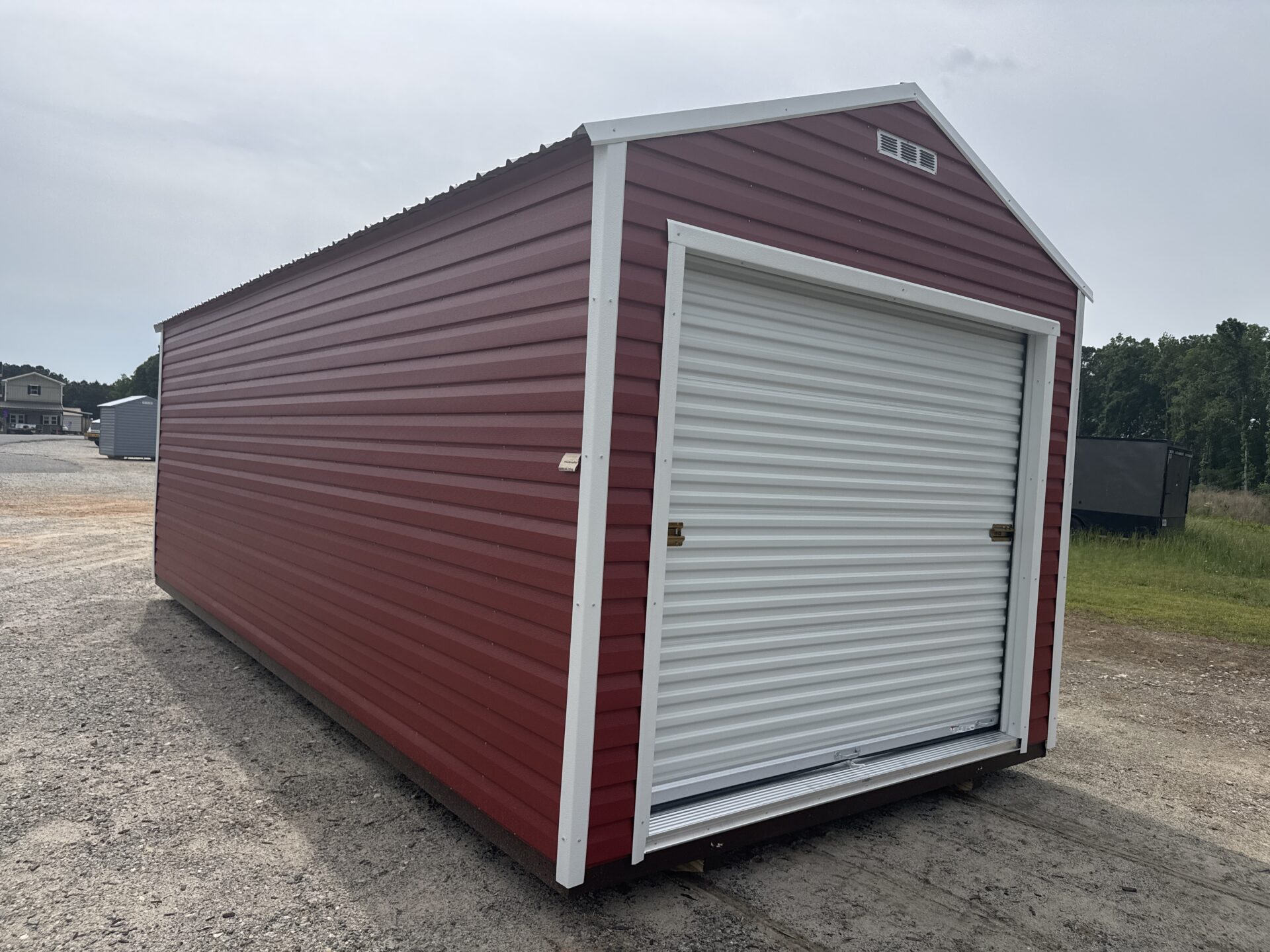Our 10′ x 20′ Ridgeline Garage w/7′ 5″ studs is one of our most popular options when a garage style building is needed. This unit comes with 7.5′ interior side walls, 4′ fiberglass door, 8′ x 6′ 3″ steel rollup door, 1 – 2 x 3 window, steel lap exterior siding, and a 20 year GALVALUME® Steel roof.